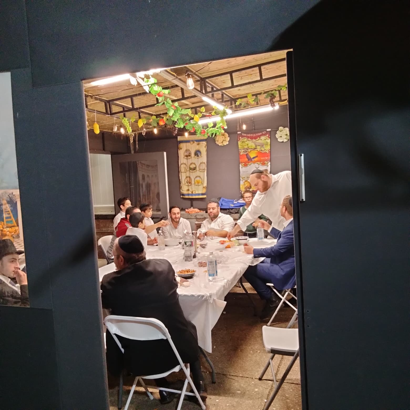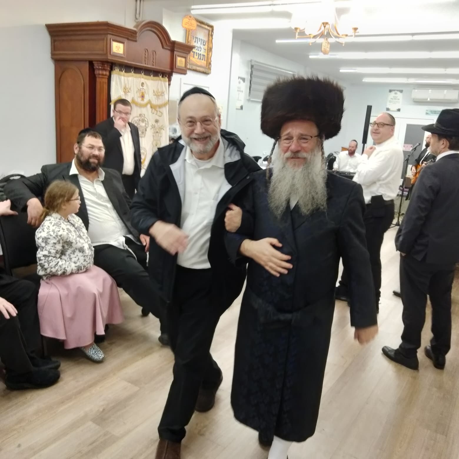 Rabbi Chaim Elisha Stern at a l'Chaim and putting מזוזה to the new local Bingo.